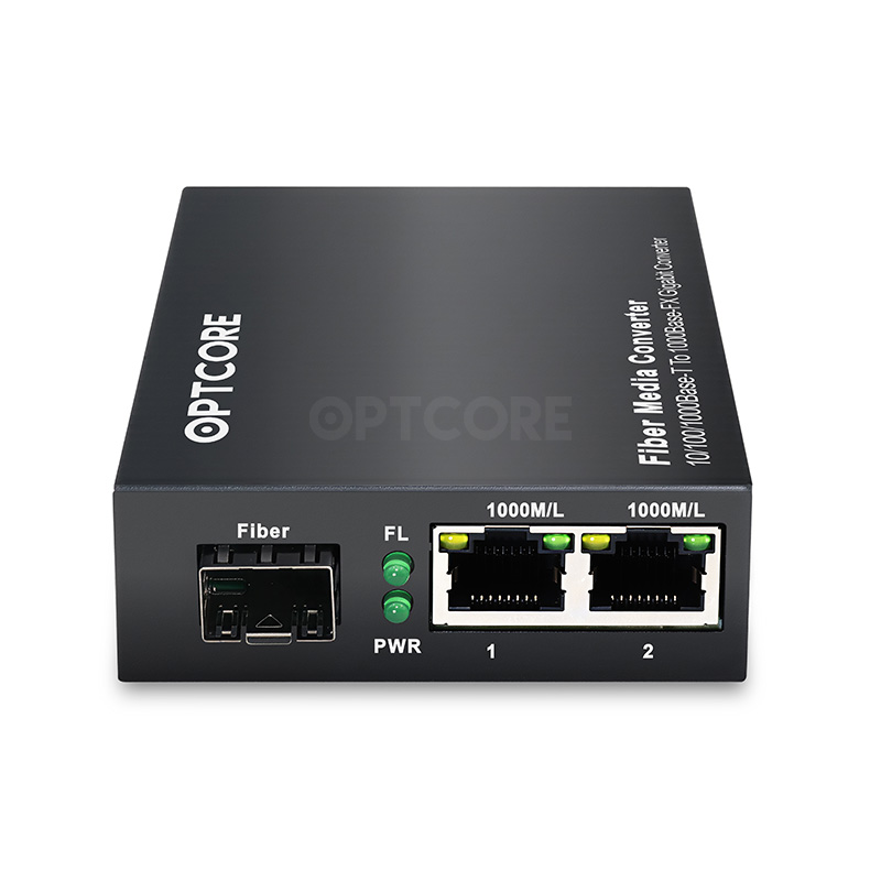 2 Port 10/100/1000Base-T RJ45 Ethernet to 1000Base-FX SFP Fiber Media Converter