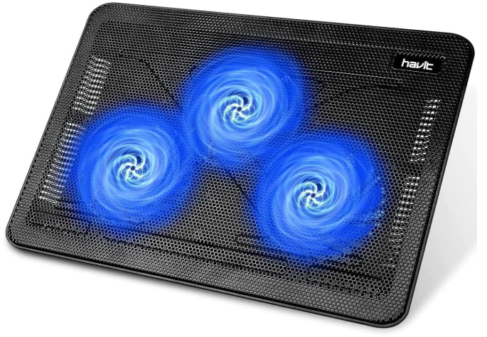 15.6"-17" Laptop Cooler Cooling Pad - Slim Portable USB Powered (3 Fans), Black/Blue